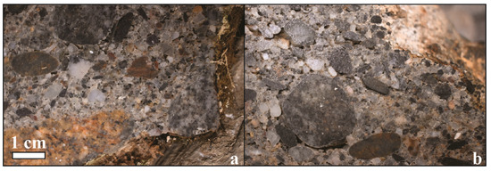 Preliminary mesoscale petrographic observations were also carried out in the underlying hard substrate. A visual mesoscale inspection was devoted to pebbles and cobbles in order to characterize their mesoscale petrographic features by means of an eye lens. Due to their evident compositions, textures, and structures, most of these materials were easily classified.