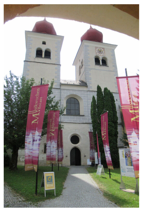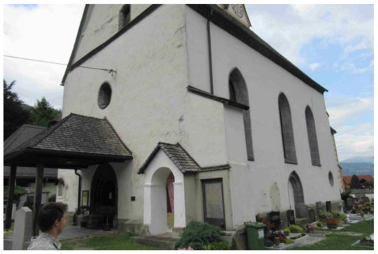 - Ginhart, K.; Bacher, E.; Friesen, I.; Hajós, G.; Helke, W.; Herzig, E.; Huber, H.R.; Migacs, M.; Oberhaidacher, J.; Reichmann-Endres, E.; et al. Kärnten. Die Kunstdenkmäler Österreichs; Anton Schroll: Wien, Austria, 2001; pp. 703–705. [Google Scholar]
