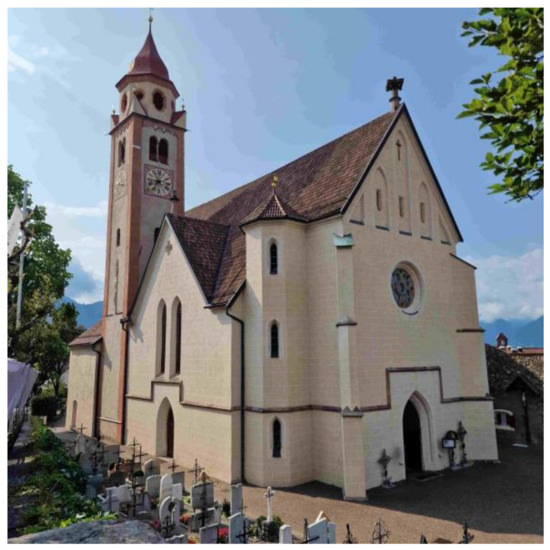 - Gögele, M. Die Kirche Hl. Johannes der Täufer. Dorf Tirol; Pfarre Tirol: Tirolo, Italy, 2006; 64p. [Google Scholar]