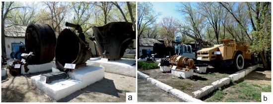The specialisation of a potential geopark is also associated with copper mineralisation and the widespread development of mineral deposits: as a “copper” metallurgical geopark, the region presents features of the formation and manifestation of copper and other minerals, as well as the history of the mining and smelting of metals from ancient times to the present. The objectives of the future geopark are the preservation of the geological–historical, natural and cultural heritage of Central Kazakhstan and its popularisation; the development of educational, scientific–industrial tourism; and the improvement of the economic and social situation of residents of the single-industry towns and villages (Figure 1).