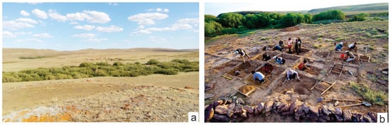 - Yermolayeva, A.S. Introduction. History of research. In Taldysai. Settlement of Ancient Metallurgists of the Late Bronze Age in the Ulytau Steppe. Collective Monograph; Kurmankulov, Z., Ed.; Institute of Archaeology Named After A. Kh. Margulan: Almaty, Kazakhstan, 2020; pp. 3–17. (In Russian) [Google Scholar]