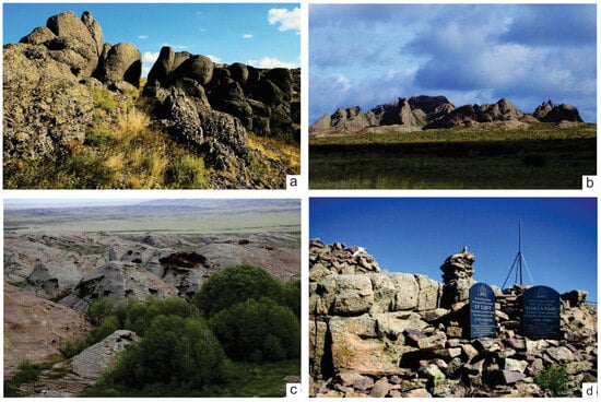 On the territory of contemporary Central Kazakhstan, there are numerous geoheritage sites telling about the geological development of the planet from the Proterozoic to the present. In Kazakhstan today, preserving geoheritage is a more acute problem than ever, as the industrialisation of the country leads to the extraction of new geological objects, many of which are unique natural monuments. World practice shows that an effective way to preserve the pristine uniqueness of natural landscapes and geosystems is rational tourism and the recreational use of natural resources [,,,,,].