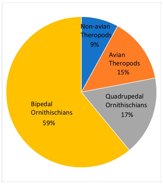 - Fiorillo, A.R.; McCarthy, P.J.; Kobayashi, Y.; Suarez, M.B. Cretaceous dinosaurs across Alaska show the role of paleoclimate in structuring ancient large-herbivore populations. Geosciences 2022, 12, 161. [Google Scholar] [CrossRef]