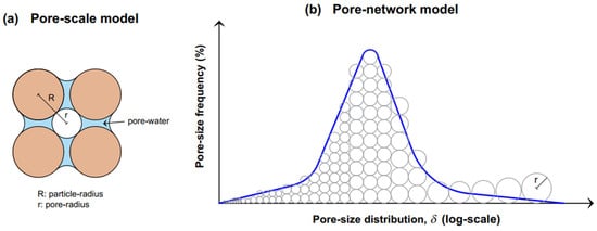 The water content stored in soil pores with radius r can be calculated [] via a widely used mathematical relationship shown in Equation (1).