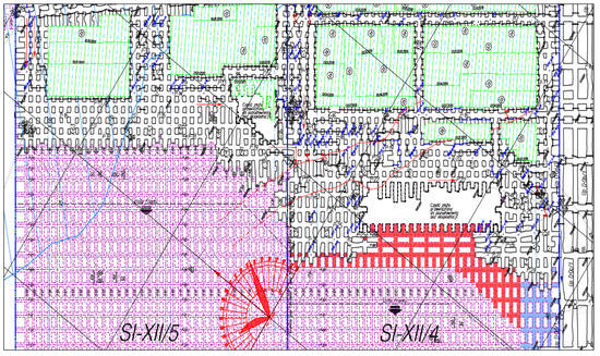 Sketch of the selected fragments of the fields, together with the progress of the individual excavation.