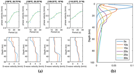 - Peng, J.; Huang, J.L.; Liu, Z.K.; Xing, K. Constraints on S-wave velocity structures of the lithosphere in mainland China from broadband ambient noise tomography. Phys. Earth Planet. Inter. 2020, 299, 106406. [Google Scholar] [CrossRef]