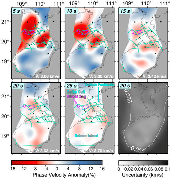 Pan, M.; Yang, T.; Le, B.M.; Dai, Y.; Xiao, H. The Magmatic Patterns Formed by the Interaction of the Hainan Mantle Plume and Lei–Qiong Crust Revealed through Seismic Ambient Noise Imaging. Geosciences 2024, 14, 63. https://doi.org/10.3390/geosciences14030063