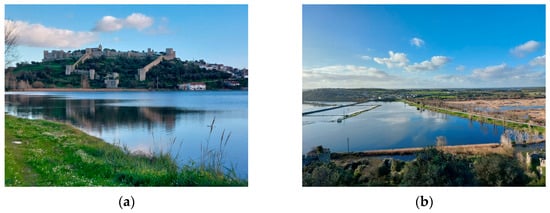 (a) Castle of Montemor-o-Velho; (b) rice fields and the Taipal marsh.