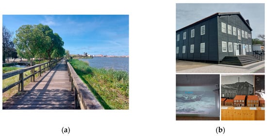 (a) Perspective of the Barrinha lagoon; (b) Mira Ethnographic museum.