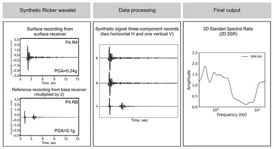 - Guillier, B.; Cornou, C.; Kristek, J.; Moczo, P.; Bonnefoy-Claudet, S.; Bard, P.-Y.; Fäh, D. Simulation of seismic ambient vibrations: Does the H/V provide quantitative information in 2D-3D structures. In Proceedings of the Third International Symposium on the Effects of Surface Geology on Seismic Motion, Grenoble, France, 30 August 2006; pp. 185–193. [Google Scholar]