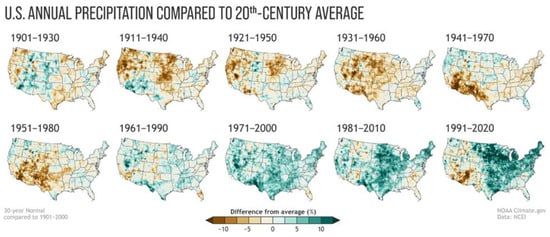 - NASA Earth Observatory Climate Changes in the United States. Available online: https://earthobservatory.nasa.gov/images/83624/climate-changes-in-the-united-states (accessed on 13 December 2023).