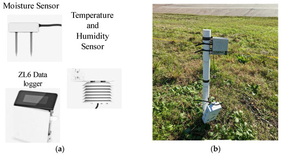 A micro weather station was set up on the study slope to monitor field weather conditions. This installation included the integration of various industrial-grade sensors, such as the GS-1 moisture sensors to measure moisture sensors, the ECRN-50 tipping-bucket rain gauge to track the precipitation, the RT-1 to measure air temperature, and the EM50 data logger (Figure 4). Variations in moisture contents were observed in the planted section up to the depth of Vetiver growth of 300 cm using sensors, with calibrated sensors positioned at depths of 15.24 cm (6 inches) and 45.72 cm (18 inches). The depths were considered to track the slope soil water content, which may induce shallow slope failure. A 3.5 mm stereo audio extension cable is utilized to link each sensor with the data recorders to continuously capture and record in situ measurements. Following the completion of the installation process, the data recorders were programmed to gather information from the soil temperature, rain gauge, moisture sensor, water potential probe, and air temperature sensors hourly. Changes in moisture content and pore water pressure were monitored using these sensors and water probes within the planted section, with sensors placed at depths of 15.24 cm and 45.72 cm. All the sensors were linked to automatic data loggers programmed to collect data at hourly intervals. The data collected from the moisture sensor installed at 45.72 cm were utilized for this study.