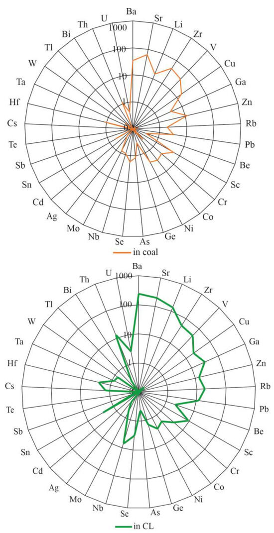 | Element | Average Content in the k7 Seam, ppm | Average Content in the Coal, ppm | Average Content in CL, ppm | Coal Clarke acc. to Yudovich (2006) [25], ppm |