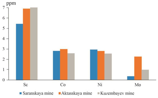 | Element | Saranskaya Mine | Aktasskaya Mine | Kuzembayev Mine | Coal Clarke (Yudovich, 2006) [25], ppm |