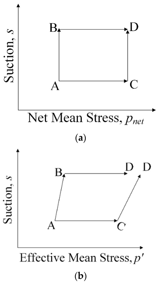 (a) Closed loop in net stress space vs. (b) open loop in effective stress space (adopted from Sheng [13]).