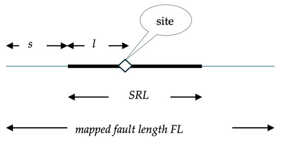 For the study site, the following considerations can be made: We consider the surface rupture with length (SRL) on the mapped fault with length (FL); see Figure 3. The random variable s tracks the along-fault-trace distance from one fixed end of the mapped fault trace to the closer end of future ruptures’ main trace. The site of interest is specified by its position l along the main trace with the surface rupture. The site can be anywhere along the fault line. These variables are strictly defined relative to the main trace of future rupture, not the pre-event mapped fault trace.