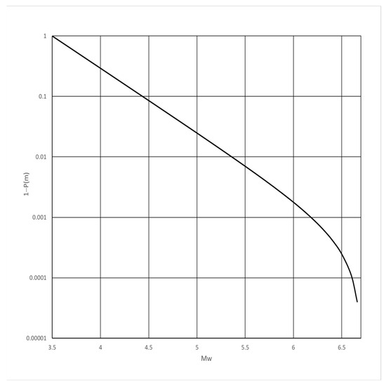 Figure 2 shows the weighted average magnitude–frequency estimation. The complementary probability distribution for magnitudes is shown in Figure 4.