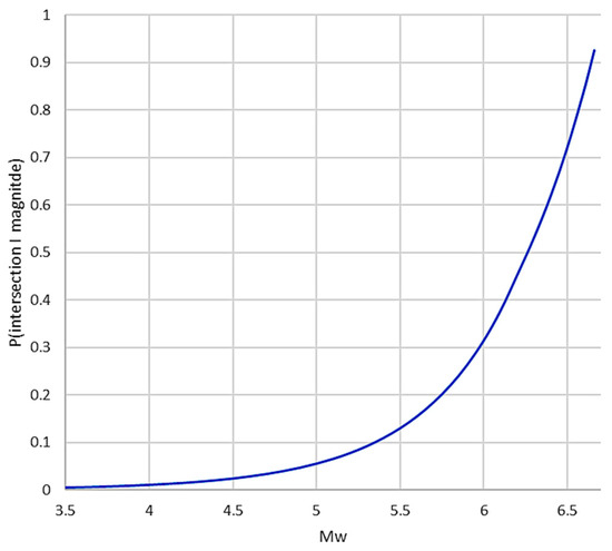 The can be calculated if the conditional probability is known. There are several empirical fault-scaling relations for the surface displacements (ASD), , such as those in [33,34]. These relations have the following generic form: