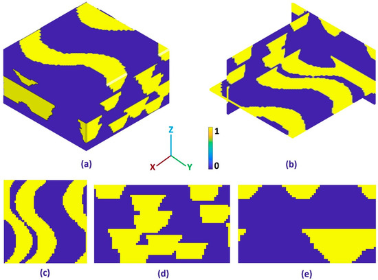 Figure 16 shows a few unconditional simulations and their cross-sectional views to compare the training image with the realizations and their structures. It can be seen that the method reproduces the desired shapes and continuities present in the three-dimensional TI with reasonable accuracy.