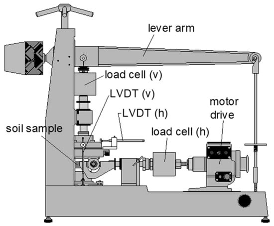 The NGI-type simple-shear (SS) device adopted to perform undrained cyclic tests on clean sands and sand–silt mixtures is shown in Figure 2. The specimen diameter was 80 mm, and it was laterally confined by a wire-reinforced rubber membrane to prevent lateral deformation of the sample. A detailed description of the SS device was reported by Porcino et al. [63].