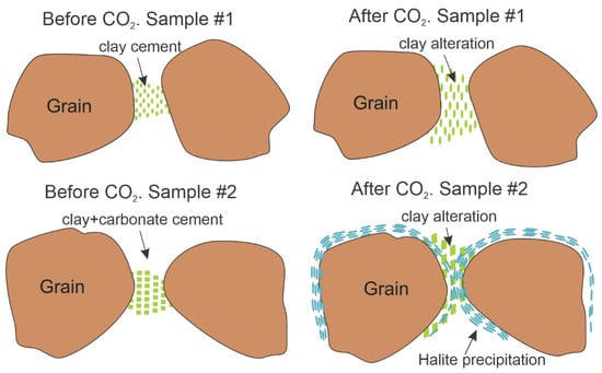 2 can lead to changes in the chemical equilibrium of formation waters, causing the precipitation of salts such as halite. This process is primarily associated with permeability reduction.
