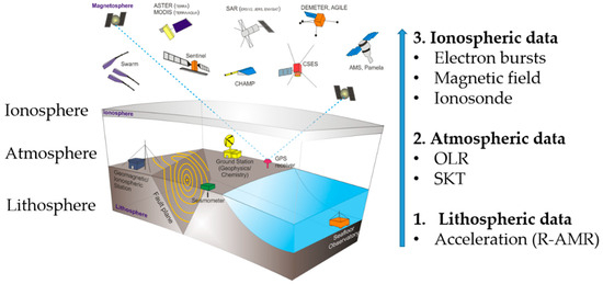 - Pulinets, S.; Ouzounov, D. Lithosphere–Atmosphere–Ionosphere Coupling (LAIC) model—An unified concept for earthquake precursors validation. J. Southeast Asian Earth Sci. 2011, 41, 371–382. [Google Scholar] [CrossRef]