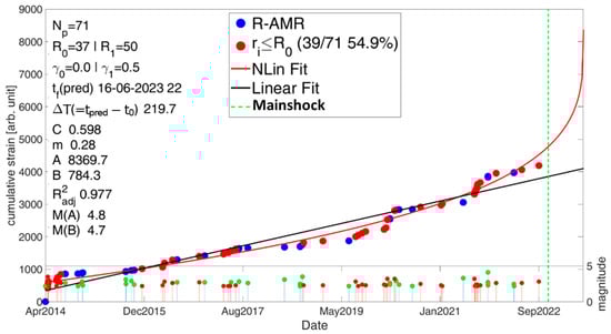 - Cianchini, G.; De Santis, A.; Di Giovambattista, R.; Abbattista, C.; Amoruso, L.; Campuzano, S.A.; Carbone, M.; Cesaroni, C.; De Santis, A.; Marchetti, D.; et al. Revised Accelerated Moment Release Under Test: Fourteen Worldwide Real Case Studies in 2014–2018 and Simulations. Pure Appl. Geophys. 2020, 177, 4057–4087. [Google Scholar] [CrossRef]
