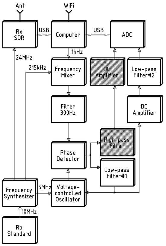 Previously, in the Doppler installation, we used a radio receiver of the R-399 type, built in accordance with superheterodyne circuitry with a synthesizer-type local oscillator, where a rubidium frequency standard was used as a reference oscillator. At present, with development of the Software-Defined Radio technology [31], a possibility appeared to include an SDR receiver into our Doppler installation instead of the R-399 radio receiver.