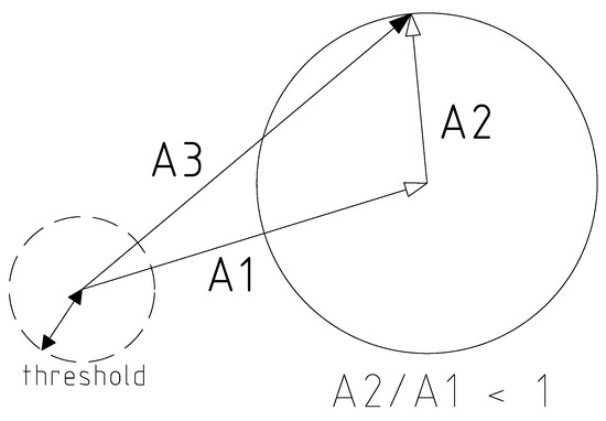 The signal at the output of the mixer is illustrated by the vector diagram shown in Figure 5, which represents most clearly the physical essence of the phenomenon. As known, on a vector diagram any number of the beams received can be reduced to the two vectors with time-varying amplitude and frequency [19]. With account to this fact, it is sufficient to consider in detail the arrival of only two beams at the input of a radio receiver device. In the simplest case we have the beating of two sinusoids, and , and their resulting oscillation can be determined using the vector diagram of Figure 5. The diagram is built for the case when the circular frequency is higher then , and the amplitude of the beam significantly exceeds that of , .