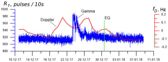 Taking into account catastrophic consequences of large earthquakes, one of the most pressing issues of modern geophysics is the detection of ionospheric anomalies which could be precursors of seismic events. In recent decades, for investigation of ionospheric anomalies before earthquakes most studies used the data of the Global Navigation Satellite System (GNSS). Thus, intensive studies of seismogenic disturbances in the ionosphere were carried out using the data from the electromagnetic satellites DEMETER and CSES [45,46]. In refs. [47,48,49], brief reviews are given of seismogenic phenomena interpreted as possible precursors of earthquakes, which were recorded in the ionosphere by the ground-based and satellite measurement methods. Up to the present, we have not met any examples of identifying pre-seismic anomalies with application of the Doppler sounding method of the ionosphere.