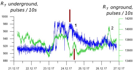 - Salikhov, N.; Shepetov, A.; Pak, G.; Nurakynov, S.; Ryabov, V.; Saduyev, N.; Sadykov, T.; Zhantayev, Z.; Zhukov, V. Monitoring of gamma radiation prior to earthquakes in a study of lithosphere-atmosphere-ionosphere coupling in Northern Tien Shan. Atmosphere 2022, 13, 1667. [Google Scholar] [CrossRef]