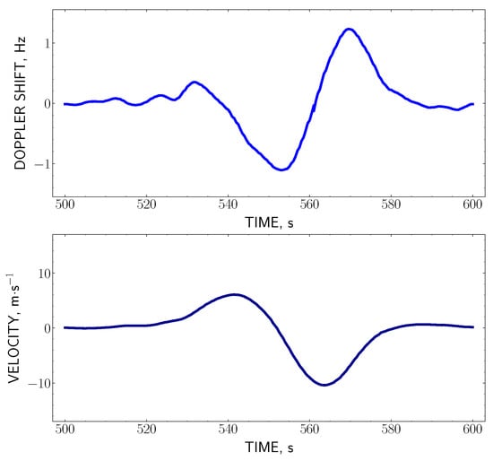 Doppler frequency measurements on an inclined radio path were carried out for the first time by Essen in 1935, and then they were actively developed in the 1960s [1,2]. Of fundamental importance and impact for further research were the data of Davis and Baker [3] on the possible connection between the disturbances in the atmosphere and ionosphere around the time of the Alaskan earthquake on 28 March 1964. Over the next half-century and beyond, significant progress was made in the study of the state of the ionosphere disturbed by various sources of natural and artificial origin, which is summarized in a number of reviews [4,5,6,7,8,9,10,11,12]. A significant part of the works is devoted to the application of Doppler methods for studying the ionosphere under various helio–geophysical and man-made disturbances [13,14,15,16,17,18].
