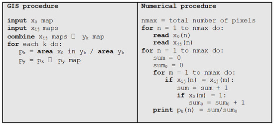 Weights-of-evidence results are obtained using the R Information package [42], and for logistic regression, we used the glm generalized maximum likelihood fitting procedure from the R stats package [43]. The unique conditions method can be performed using standard GIS techniques or programmed numerically accordingly, as done in this study (Figure 2).