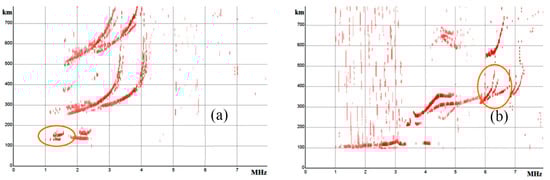 One of the remarkable effects observed before earthquakes was described first in [63]. The authors proposed the physical mechanism of the formation of the layers of metallic aerosols at altitudes slightly higher than a normal altitude of Es due to the penetration of the seismogenic electric field. One of the recent examples of such an effect is demonstrated in Figure 12 [49] and was registered by the Petropavlovsk-Kamchatsky vertical ionosonde before the M7.5 earthquake on 25 April 2020 at northern Kurils.