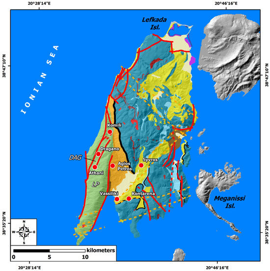 - Lekkas, E.; Danamos, G.; Lozios, S. Neotectonic structure and evolution of Lefkada Island. Bull. Geol. Soc. Greece 2001, 34, 157–163. [Google Scholar] [CrossRef]
