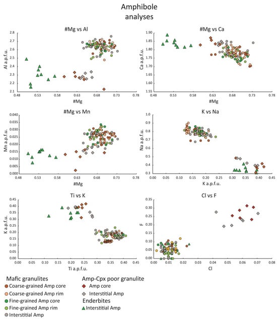 Amphibole chemical composition in mafic granulite, Amp–Cpx-poor granulite and enderbite.