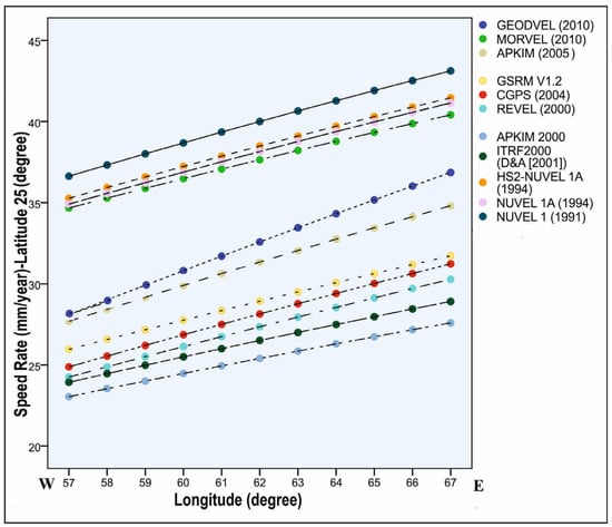 - DeMets, C.; Gordon, R.G.; Argus, D.F.; Stein, S. Effect of recent revisions to the geomagnetic reversal time scale on estimates of current plate motions. Geophys. Res. Lett. 1994, 21, 2191–2194. [Google Scholar] [CrossRef]