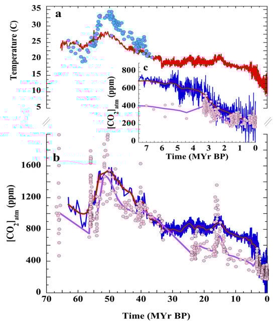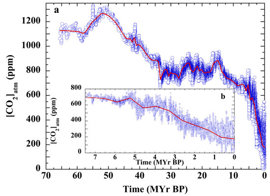 36. Fletcher, B.J.; Brentnall, S.J.; Anderson, C.W.; Berner, R.A.; Beerling, D.J. Atmospheric carbon dioxide linked with Mesozoic and early Cenozoic climate change. Nat. Geosci. 2008, 1, 43–48. [Google Scholar] [CrossRef]