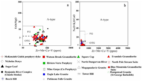 - Whalen, J.B.; Currie, K.L.; Chappell, B.W. A-type granites: Geochemical characteristics, discrimination and petrogenesis. Contrib. Mineral. Petrol. 1987, 95, 407–419. [Google Scholar] [CrossRef]