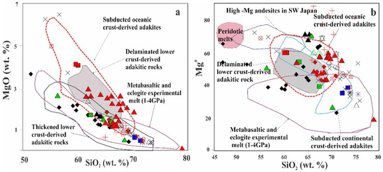 - Zhang, L.; Li, S.; Zhao, Q. A review of research on adakites. Int. Geol. Rev. 2019, 63, 47–64. [Google Scholar] [CrossRef]