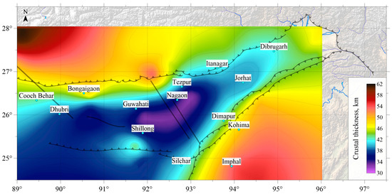 - Mitra, S.; Priestley, K.F.; Borah, K.; Gaur, V.K. Crustal Structure and Evolution of the Eastern Himalayan Plate Boundary System, Northeast India. J. Geophys. Res. Solid Earth 2018, 123, 621–640. [Google Scholar] [CrossRef]