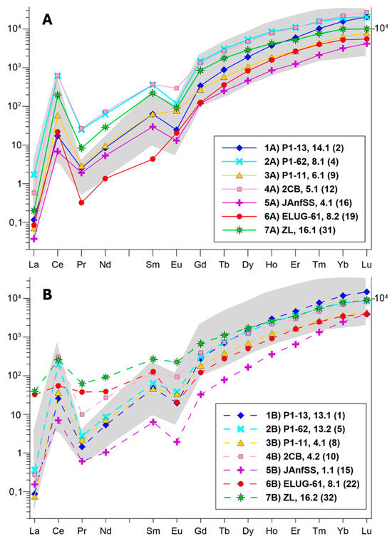 The aim of this study is to determine the spatial distribution of geochemical anomalies of selected potential toxic elements in the soils of the river basins in the Northeastern Caucasus—specifically the Ulluchay, Sulak, and Sunzha Rivers. A concentration of 25 chemical elements was measured using inductively coupled plasma mass spectrometry (ICP-MS). Petrogenic elements commonly found in the Earth’s crust (Al, Na, Ca, Fe, Mg) showed high concentrations (Na up to 306,600.70 mg/kg). Conversely, concentrations of Ag, Cd, Sn, Sb, and Te at many sampling sites were extremely low, falling below the detection limits of analytical instruments. The geochemical indicators Cf (contamination factor) and Igeo (geoaccumulation index) indicate that the regional characteristics of the territory, such as lithological conditions, hydrochemical schedules, and the history of geological development of the territory, affect the concentration of elements. Anomalous concentrations were found for seven elements (Ba, Na, Zn, Ag, Li, Sc, As), whereas no anomalies were identified for Be, Mg, Al, Mn, Fe, Co, Ni, Cu, Pb, Te, and Cs. For the most part (8 of 10), the sampling sites with anomalous chemical element content are located in the basin of the Sunzha River. Two sites with anomalous chemical element content have been identified in the Sulak River Basin. Anomalous values in the Sulak River Basin are noted for two chemical elements—Ba and Na. Natural features such as geological structure, parent rock composition, vertical climatic zonation, and landscape diversity play a major role in forming geochemical anomalies. The role of anthropogenic factors increases in localized areas near settlements, industrial facilities, and roads. The spatial distribution of geochemical anomalies must be considered in agricultural management, the use of water sources for drinking supply, the development of tourist routes, and comprehensive spatial planning.