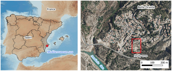To address these issues, national and regional planning tools like BDMoves (Spanish Land Movements Database–IGME, 2016; https://info.igme.es/BDMoves/ (accessed on 21 September 2025), COPUT database landslides risk [16], and the basic geomorphological cartography collection [17] have incorporated landslide mapping into their frameworks. However, the cartographic resolution, infrequent updates, and static nature of these maps limit their utility for detailed, site-specific interventions. Research indicates that while regional assessments are essential for broad-scale planning, they must be complemented by local-scale studies using modern, affordable, high-resolution monitoring methods [18,19]. In this context, the Bella Orxeta case offers an opportunity to demonstrate how targeted studies can supplement existing planning frameworks and improve community resilience.