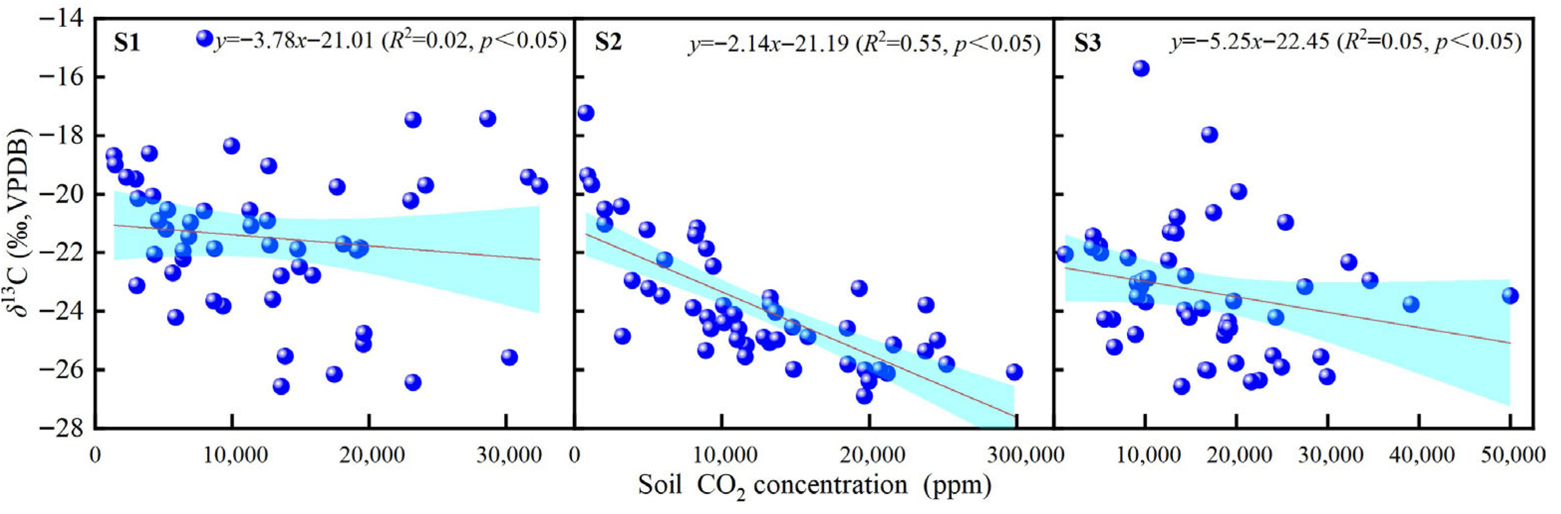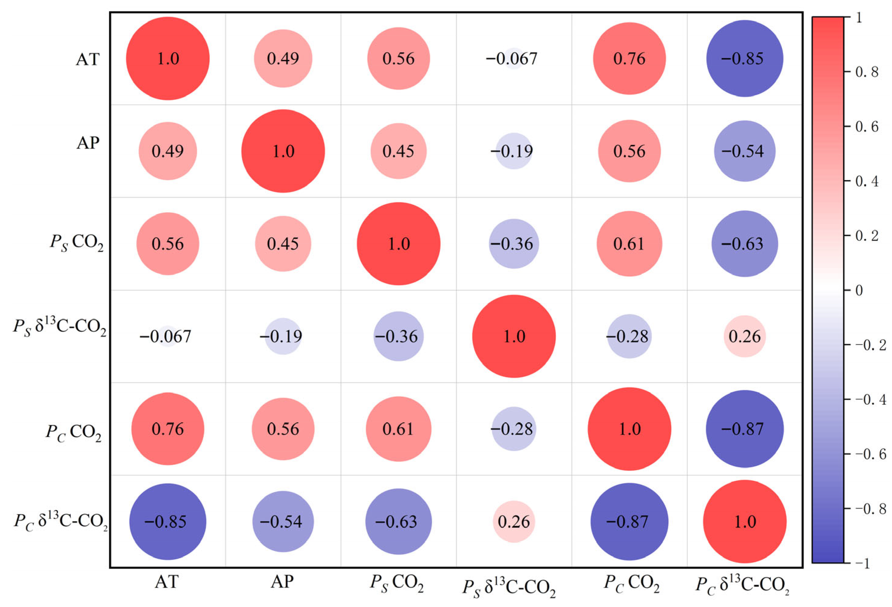 5.1.2. Soil CO2 Concentration and Its δ13C Under Different Land-Use Types