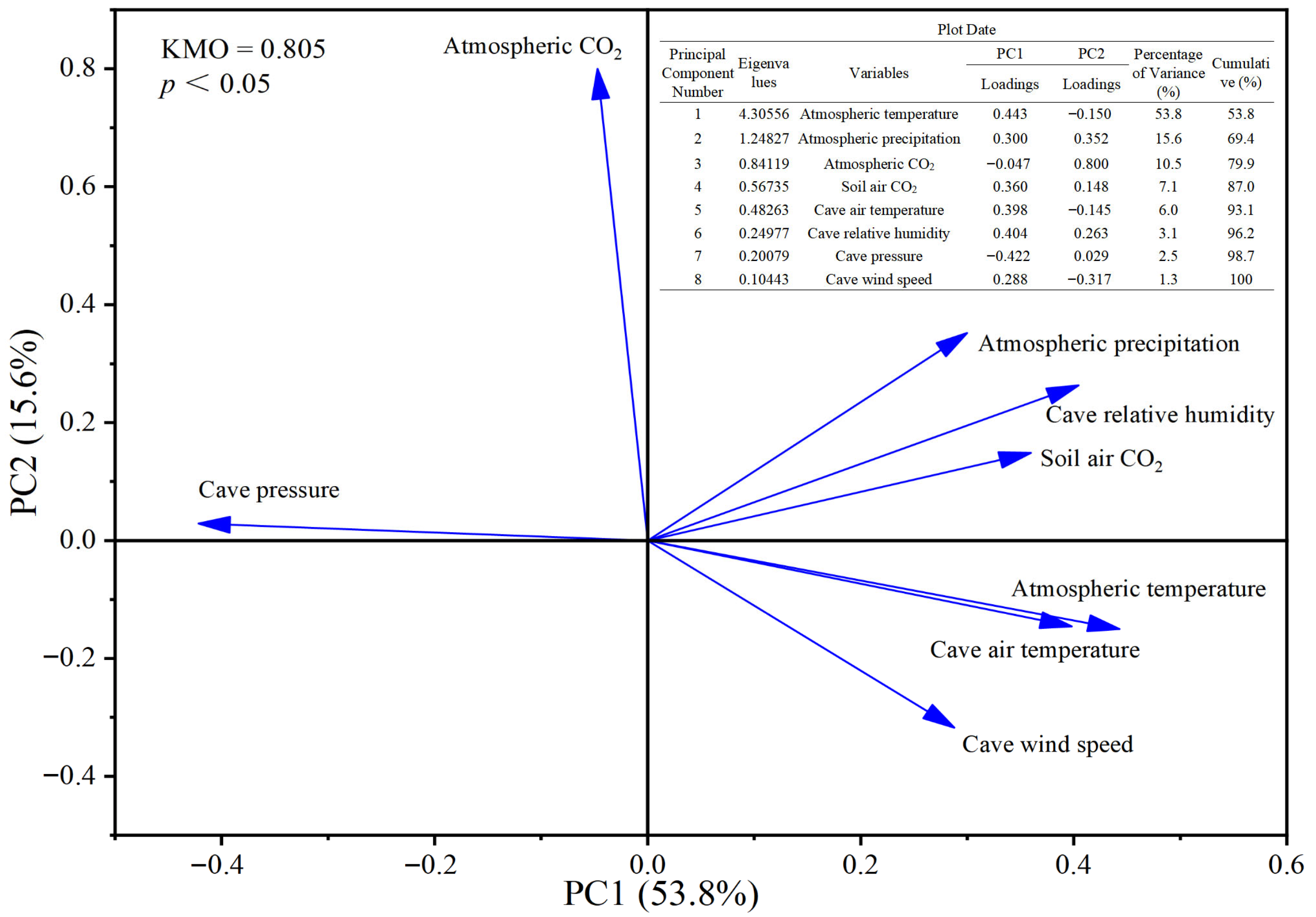 - Xiong, Y.; Zhou, Z.; Ding, S.; Zhang, H.; Huang, J.; Gong, X.; Su, D. Spatiotemporal Variation Characteristics and Influencing Factors of Karst Cave Microclimate Environments: A Case Study in Shuanghe Cave, Guizhou Province, China. Atmosphere 2023, 14, 813. [Google Scholar] [CrossRef]