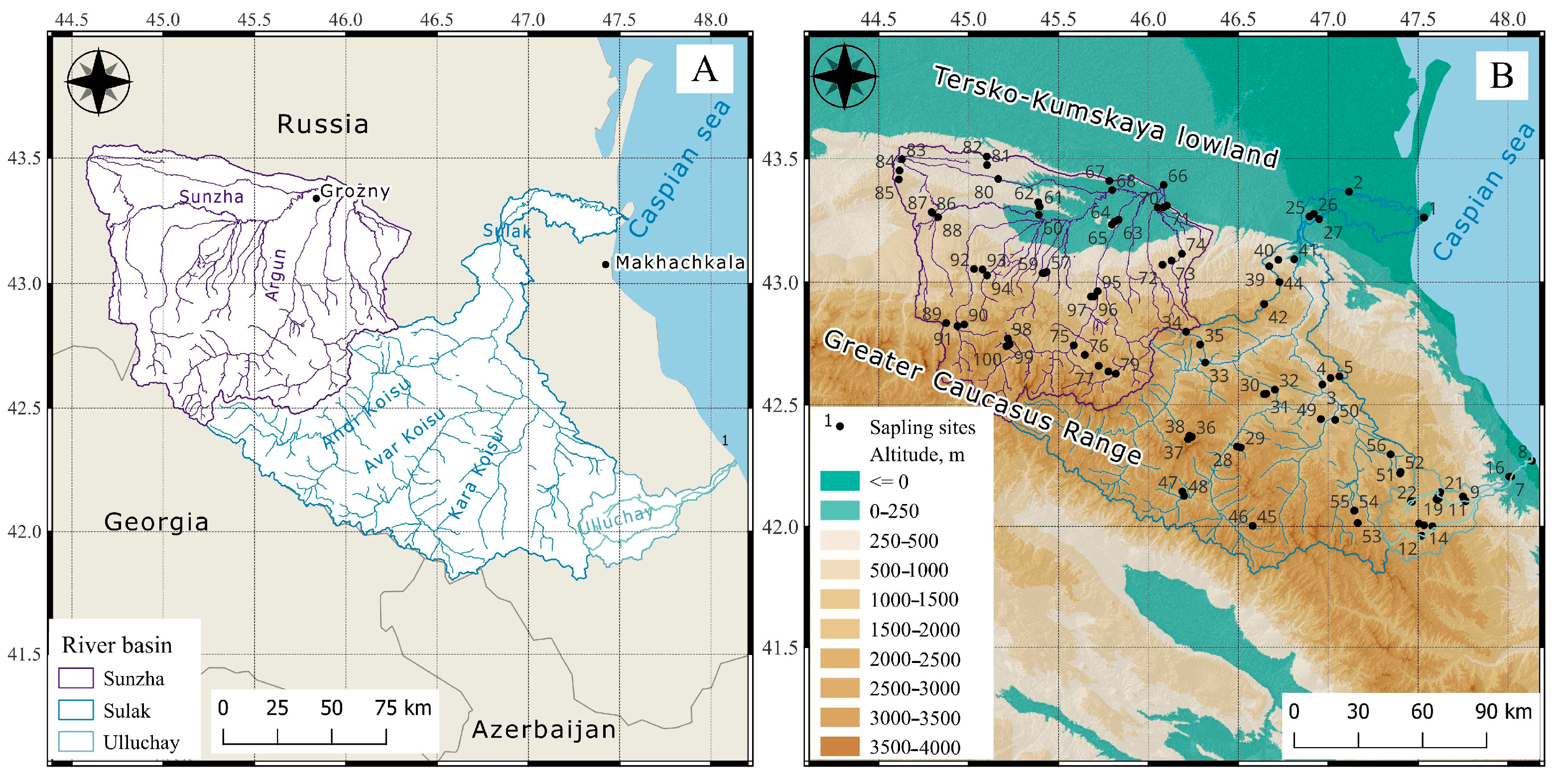 48]. The Cs scattering zone is located in the lower Sulak and Ulluchay Rivers.