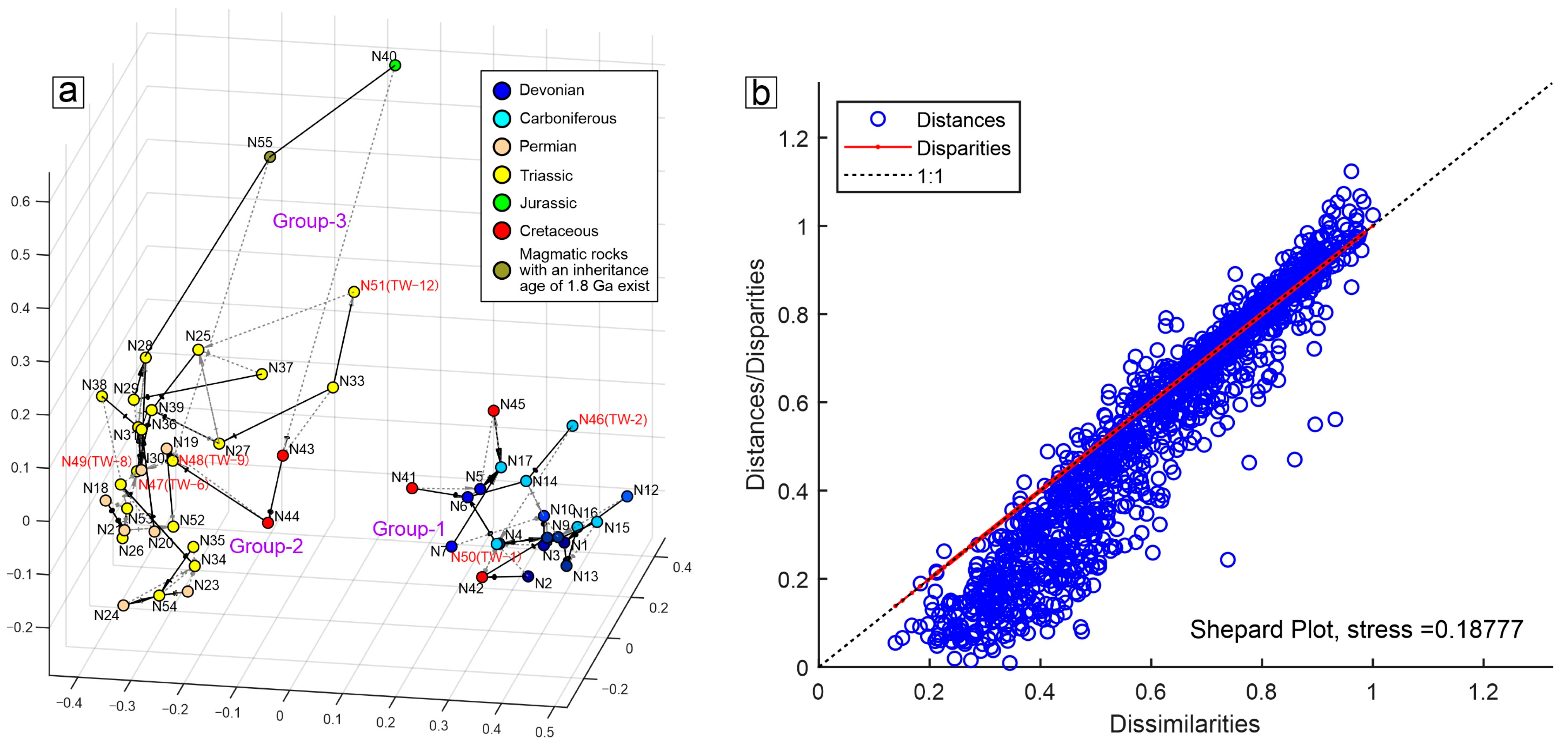 - By integrating our findings with existing datasets from studies of detrital zircon age dating, volcanic and plutonic activity, ancient rock layer sequences, and geophysical investigations, we propose that the WQOB underwent a tectonic evolution during the Triassic characterized by pre-Triassic subduction and localized extension during the subduction process.