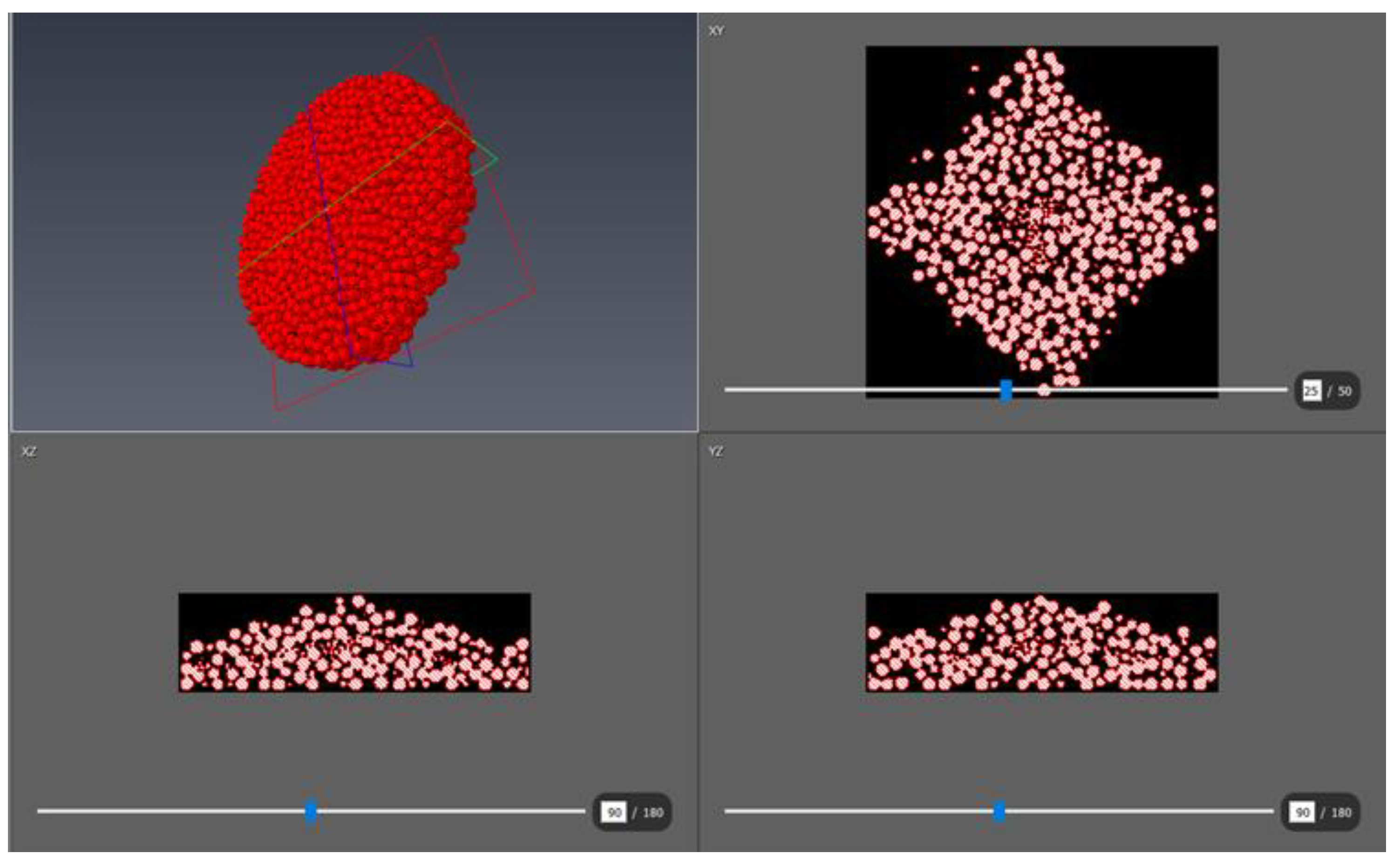 26]. The deposition of grains of specified shape and size for 17 sand pack (structure) distributions was simulated by means of a discrete element method (DEM). Such a robust approach considers the interactions between the individual elements and is commonly used in the context of soil mechanics and geotechnical studies [