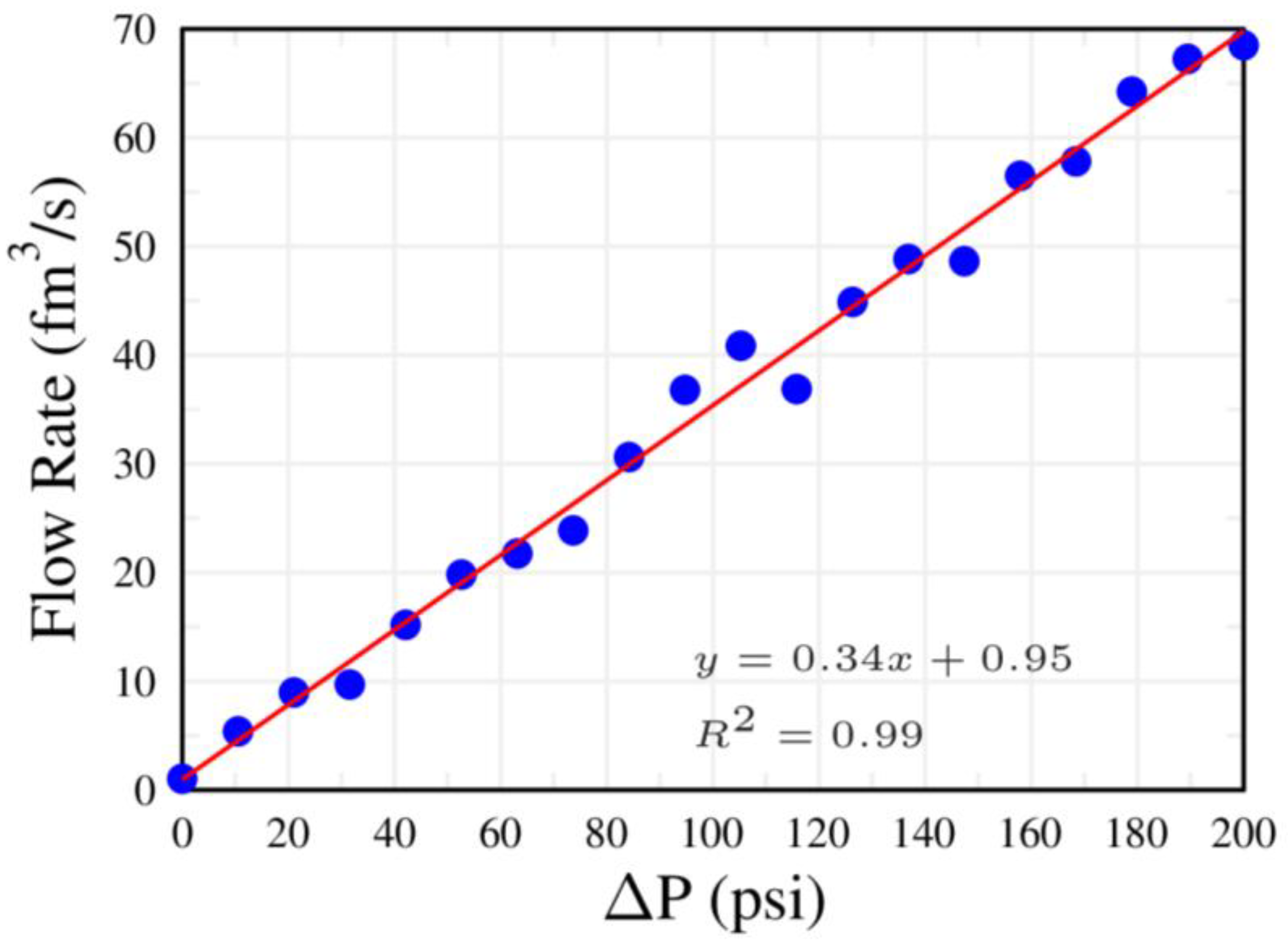 To further demonstrate a linear correlation of the gas flow rate as a function of pressure, the relationship between the gas flow rate and the rock permeability were considered.