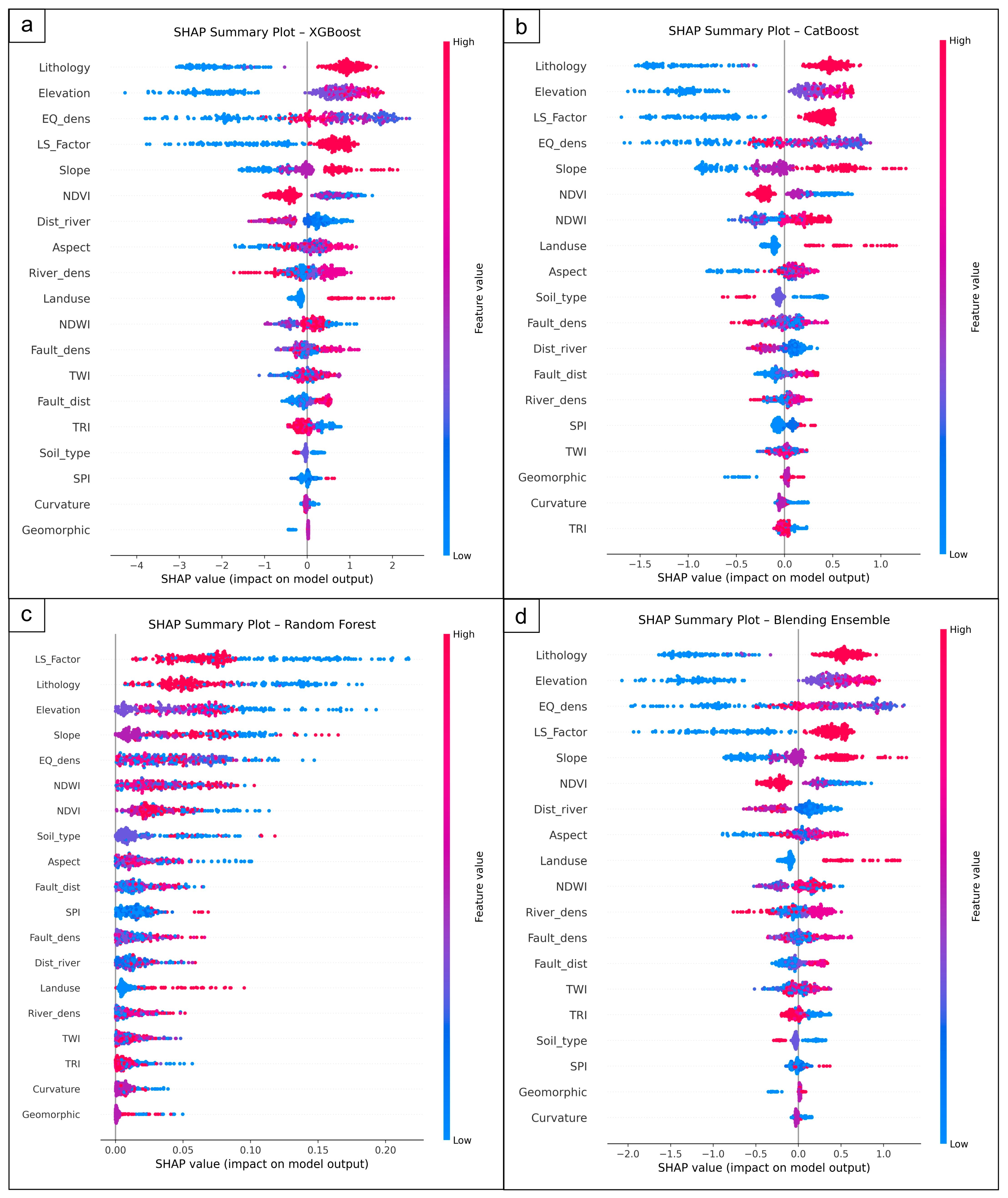 - Sun, D.; Ding, Y.; Wen, H.; Zhang, F.; Zhang, J.; Gu, Q.; Zhang, J. SHAP-PDP Hybrid Interpretation of Decision-Making Mechanism of Machine Learning-Based Landslide Susceptibility Mapping: A Case Study at Wushan District, China. Egypt. J. Remote Sens. Space Sci. 2024, 27, 508–523. [Google Scholar] [CrossRef]